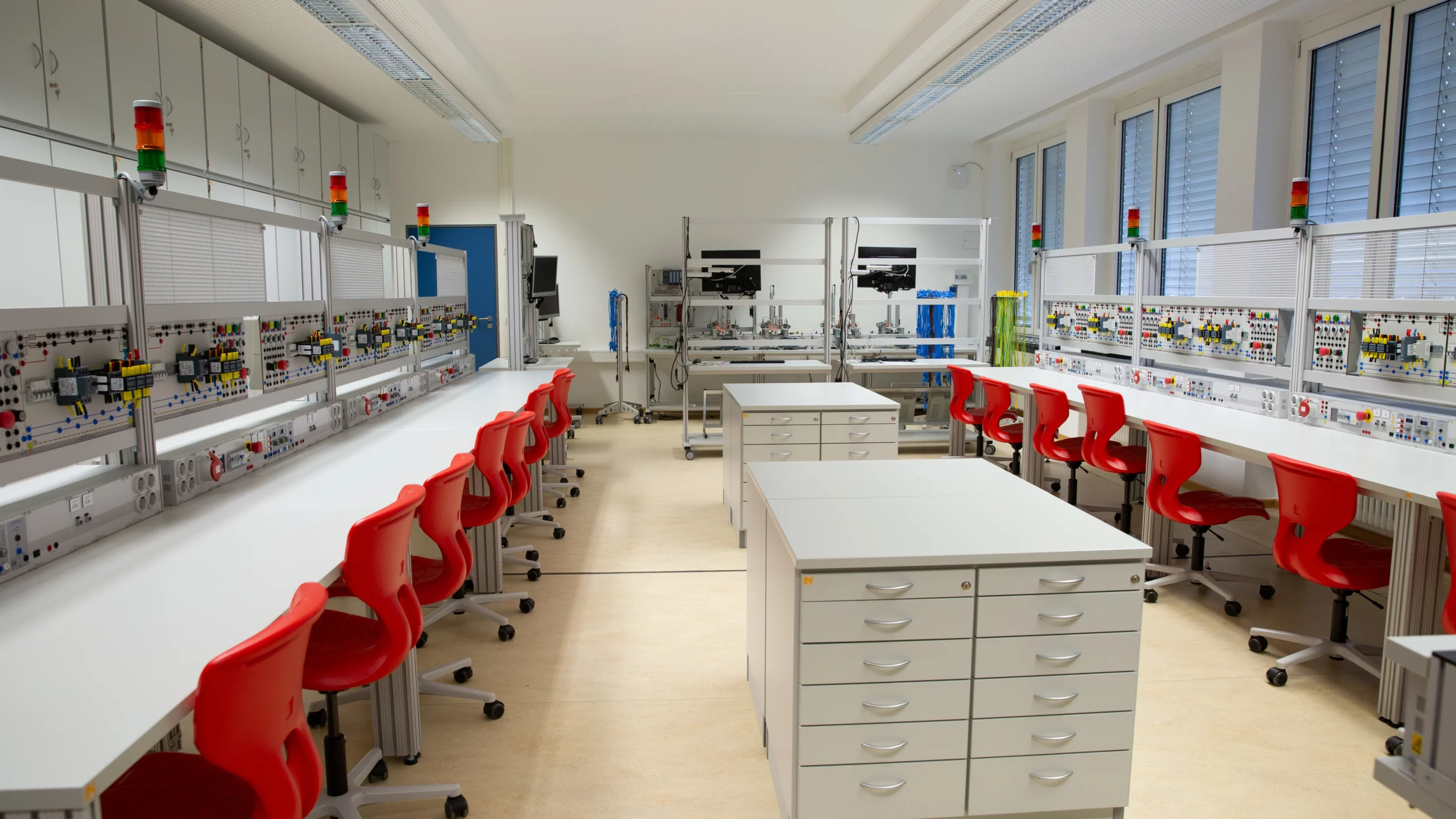 Nach der Lieferung, Montage und Inbetriebnahme der Trainingssysteme, Labormöbel und Labortechnik folgten Einweisungen und Schulungen des Lehrpersonals. In den sechs neuen Laboren lernen nun je bis zu 16 Schülerinnen und Schüler auf hohem Niveau und dem aktuellen Stand der Technik in den Bereichen Montage- und Instandhaltungstechnik, Elektrotechnik sowie Systemtechnik und IT. Der moderne Unterricht ermöglicht auch selbstgesteuertes Lernen und führt zu deutlich mehr Engagement und Motivation sowohl auf Seiten der Auszubildenden als auch der Lehrkräfte.
