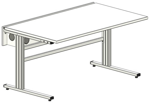 Multifunktionstisch mit einem durch die verschiebbare Tischplatte abgedecktem, grossen Kabelkanal zur Unterbringung von Steckdosenleisten, kleinen Netzteilen sowie IT- und Stromversorgungsnetzwerken. Zur Verwendung als IT- oder Desktop-Labor-Arbeitsplätze. Alle Kabel (Monitor, Maus, Tatsatur, Stromversorgung) können auf kurzem Weg aus der Kunststofflippendichtung zugeführt werden und ermöglichen aufgeräumte Arbeitsplätze. Der Kabelkanal ist mit einem Zylinderschloss verschließbar.