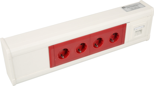 Energieversorgung, 4-fach Steckdose rot, RJ45 Doppeldose CAT6A