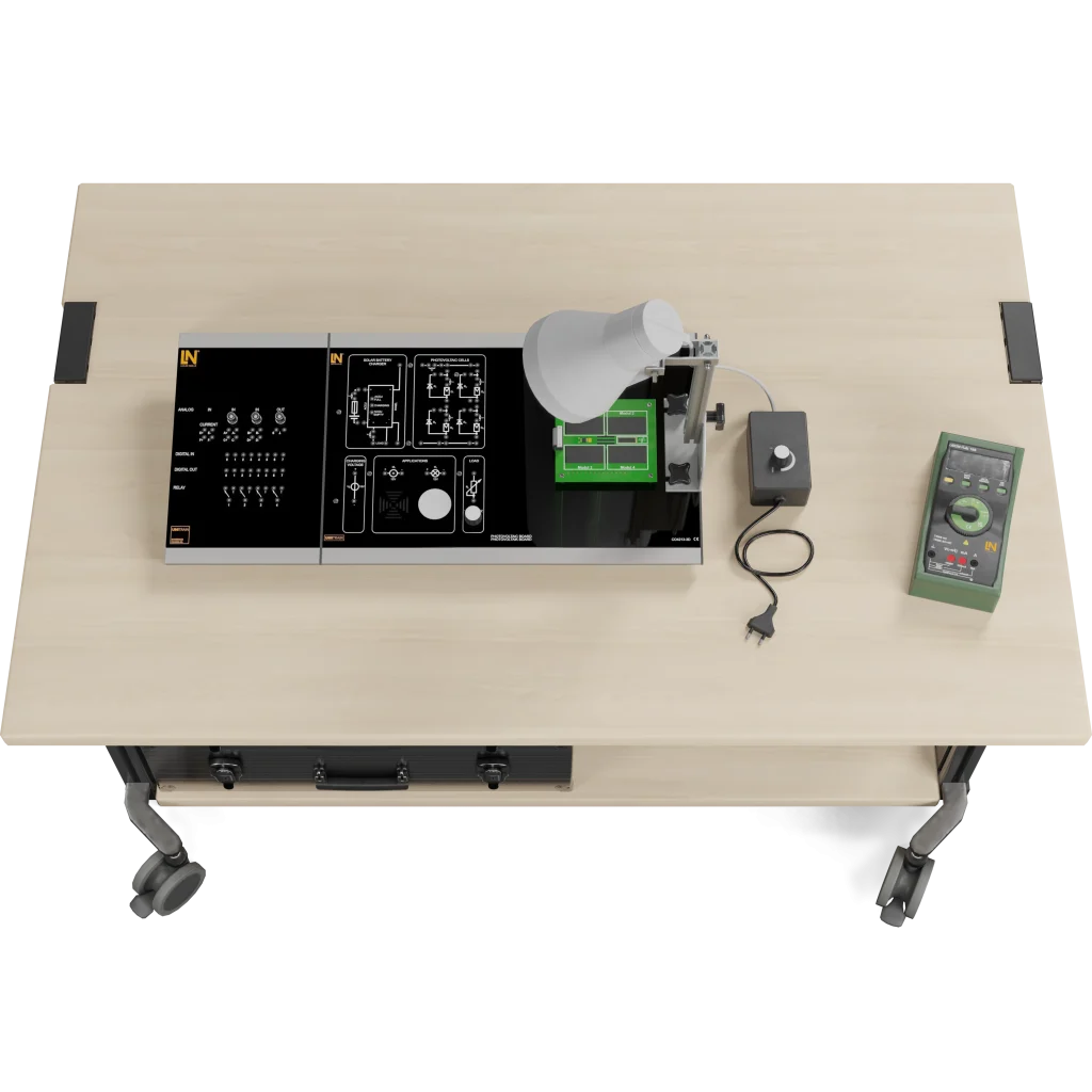 Das UniTrain-System bietet hierfür die ideale Lösung. Es ist ein kompaktes, computergestütztes Trainingssystem, das Lernenden ermöglicht, sich in die Photovoltaik-Grundlagen einzuarbeiten – von der Kennlinie der einzelnen Solarzelle über die Verschaltung von Modulen bis hin zur kompletten Planung und Fehlersuche an einer autarken PV-Inselanlage.