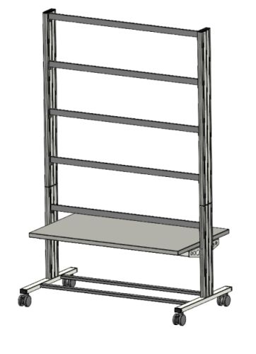 Mobiler Experimentierstand, Aluprofil, 4-etagig, 6er Steckdosen, 1250x700x1995mm