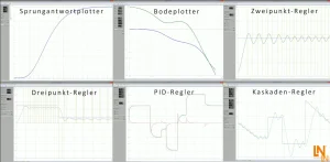 Lernende vergleichen verschiedene Regelstrategien an unterschiedlichen industriellen Regelstrecken wie Füllstand, Drehzahl, Position, Licht und Temperatur.