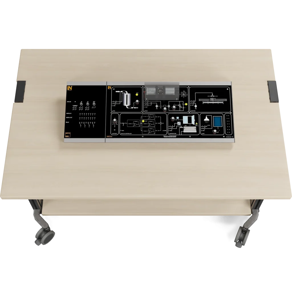 Dieses UniTrain-System bietet eine praktische Einführung in die Regelungstechnik. Es vermittelt Lernenden die Grundlagen durch interaktive Kursinhalte und Experimente an fünf integrierten, praxisrelevanten Regelstrecken. Sie erwerben die notwendige Handlungskompetenz, um Regelkreise zu analysieren, zu parametrieren und zu optimieren.