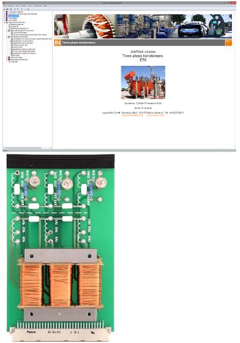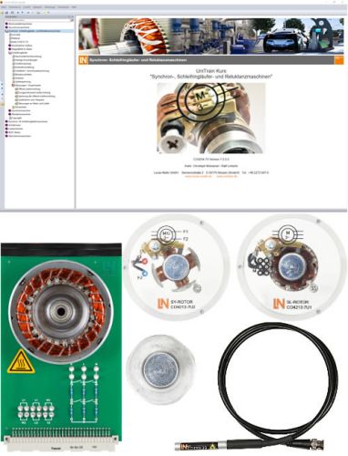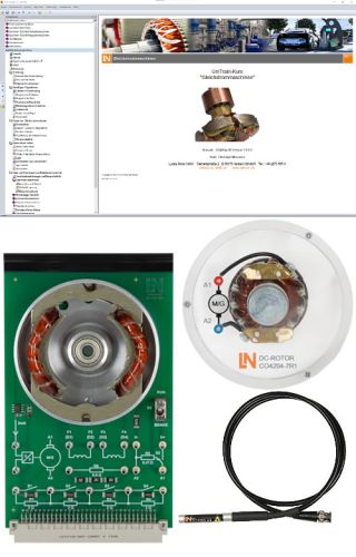- 1 Experimentierkarte mit offenem, 2-poligen Stator und 2 Erregerwicklungen, Temperatursensor mit Stromquelle sowie Anlass- und Lastwiderständen