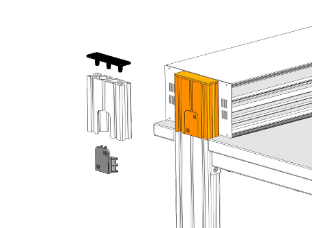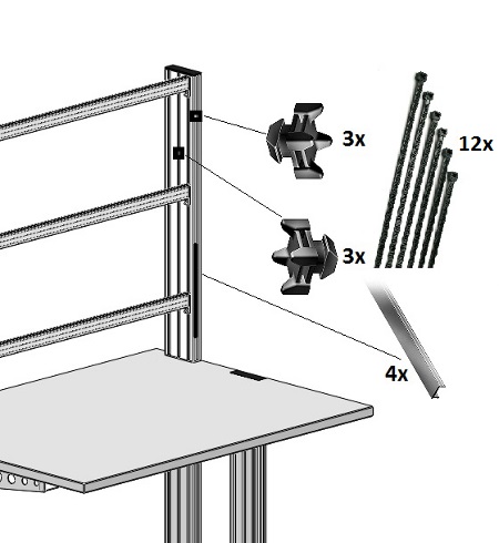 Die Montage erfolgt mit zusätzlichen Distanzleisten zur Überbrückung von Tischzargen.